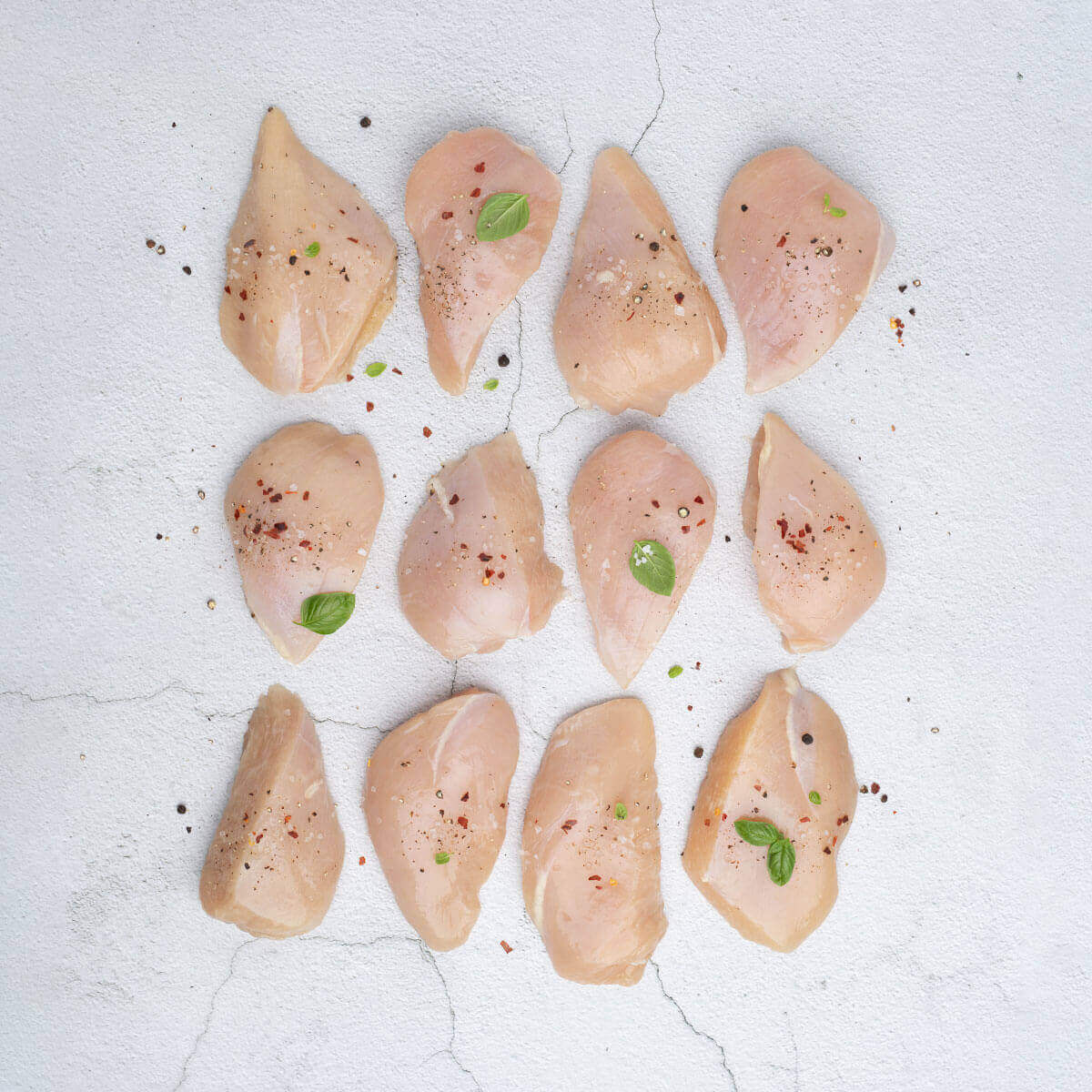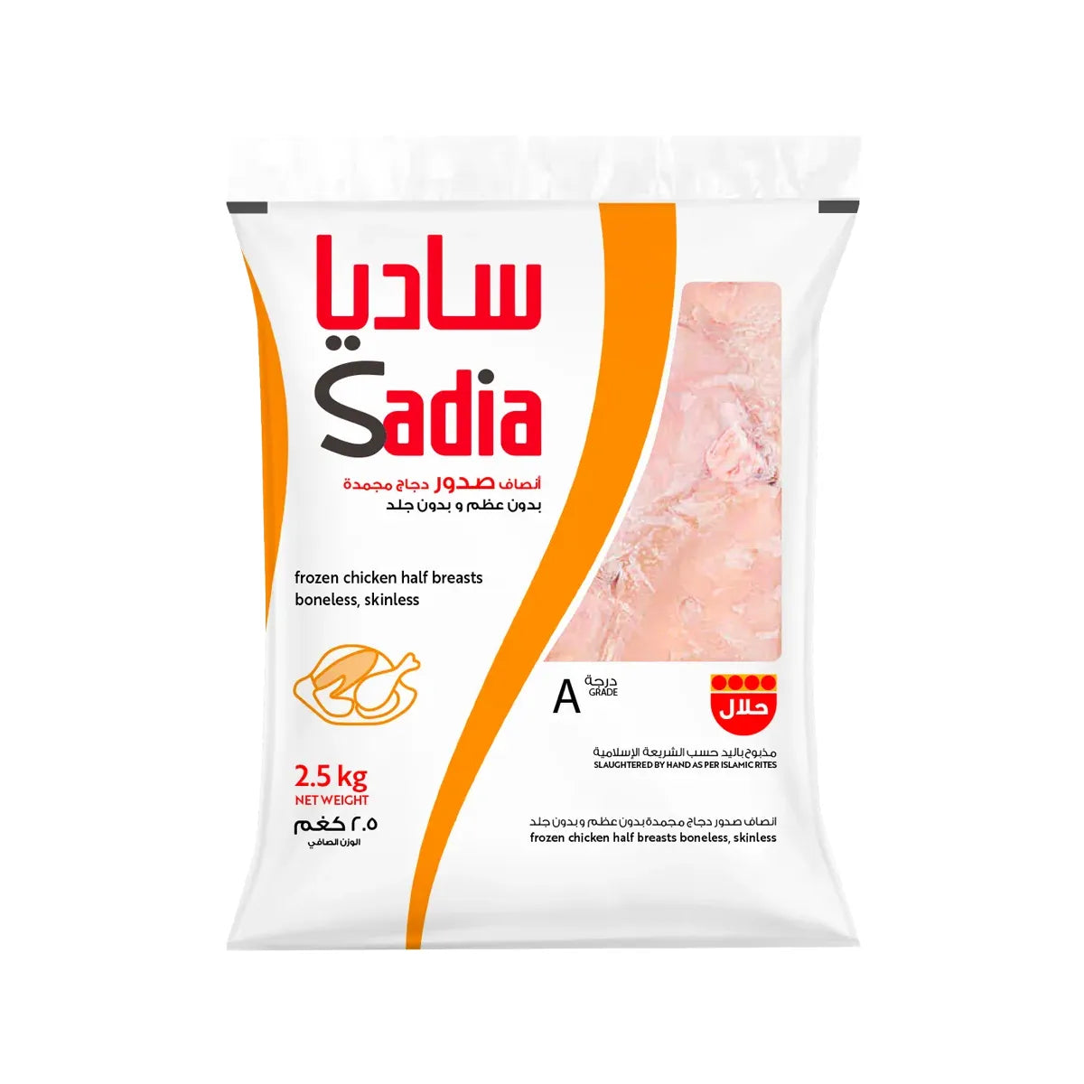 ذبح حلال باليد وفقًا للشعائر الإسلامية. مجمدة طازجة للحفاظ على العناصر الغذائية. خالية من المضادات الحيوية. غنية بالبروتين وفيتامين ب والحديد. المكونات: صدور الدجاج بدون عظم وجلد.