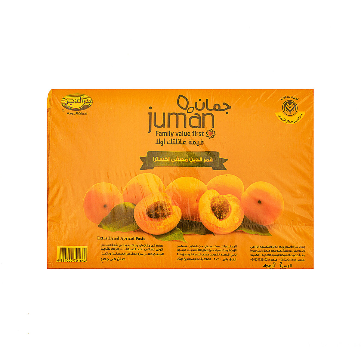 لذيذ ومذاقها قوي، عجينة المشمش المجففة الإضافية. خالية من الكائنات المعدلة جينيا. المكونات: مشمش، جلوكوز، سكر.