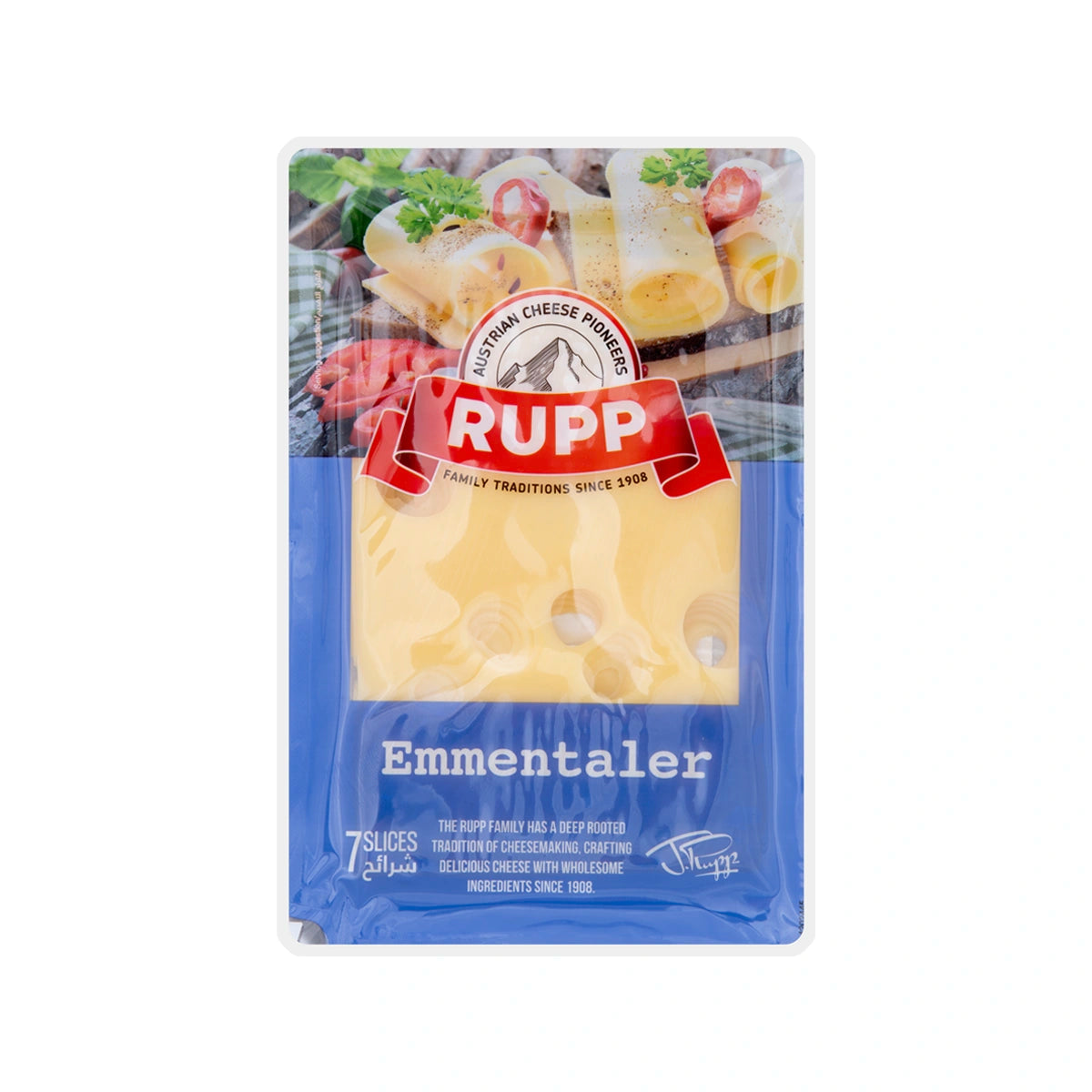 Satisfy your cravings for the finest cheese with RUPP's Emmentaler Slices. Made from high-quality dairy, these slices are perfect for adding a touch of sophistication to any dish. Whether you're a cheese lover or simply looking to elevate your meals, these slices are a must-try.