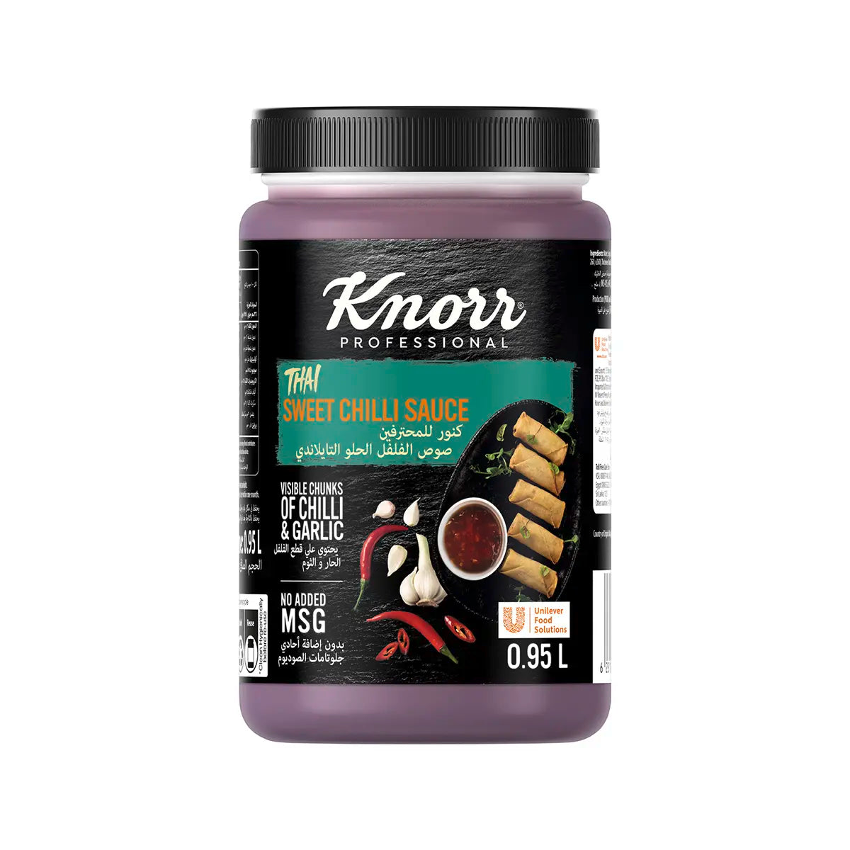 Elevate your menu with the authentic taste and balanced flavor of Knorr Professional Thai Sweet Chili Sauce. Crafted with a perfect harmony of sweet and spicy notes, this essential sauce features visible real chunks of chili and garlic, delivering a rich texture and depth of flavor that distinguishes it from ordinary sweet chili sauces.