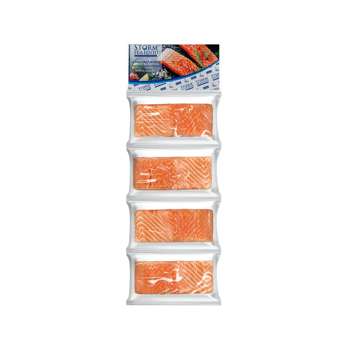 Experience the exquisite taste of our skinless salmon portions, carefully packed to preserve freshness and flavor. Each pack contains 4 portions, with each portion weighing 200g, perfect for a delicious and satisfying meal.