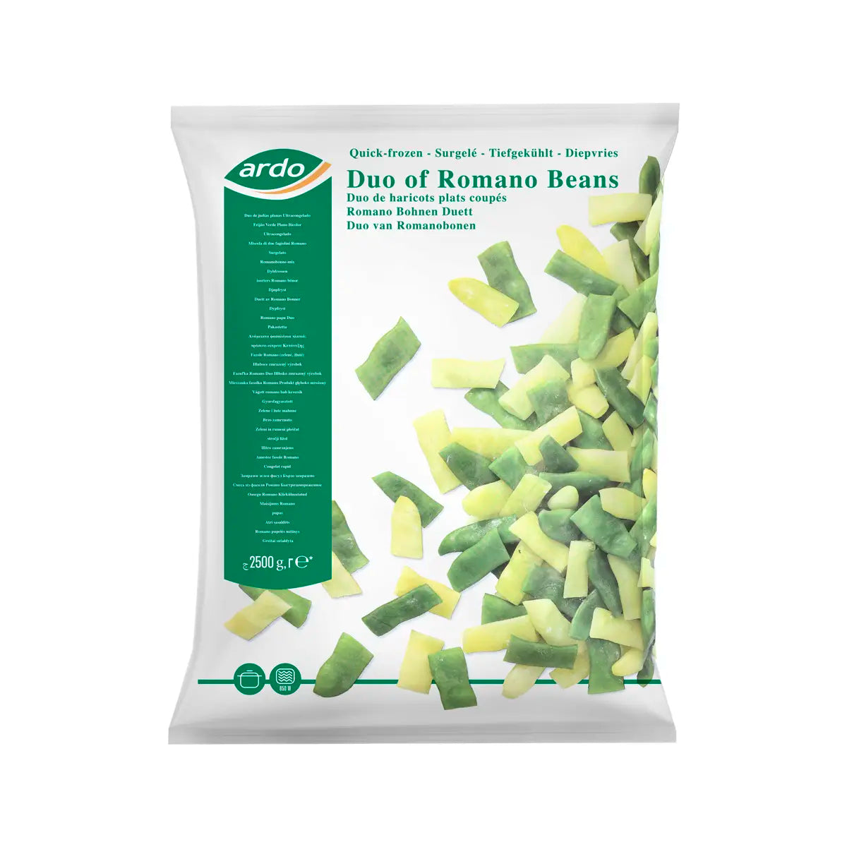 Introducing the newest addition to the Ardo brand - Duo Romano Beans! These delicious beans are now available in a convenient 2.5kg frozen pack, making them a must-have for any kitchen. Perfectly picked and frozen at their peak, these beans are packed with flavor and nutrients. Add them to your favorite dishes for a burst of freshness and nutrition.