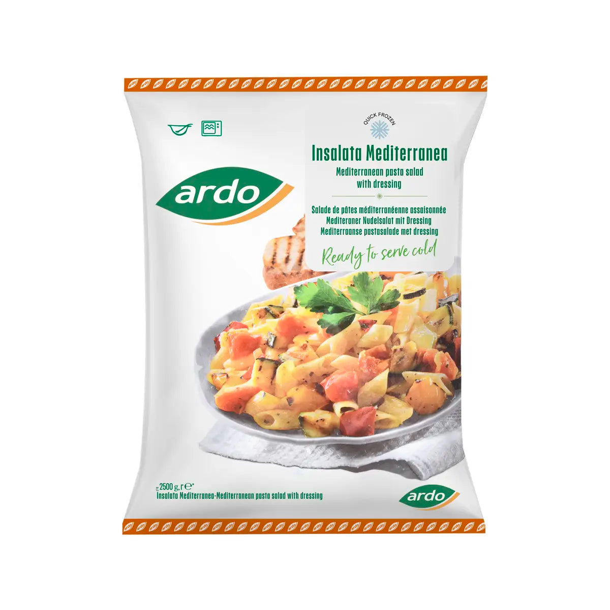 Upgrade your mealtime with our Ardo Mediterranean Pasta Salad with Dressing. With its perfect blend of vegetables and fruits, it's a healthy and tasty option for any occasion. Don't miss out on this new addition to our frozen product line. Try it today and taste
