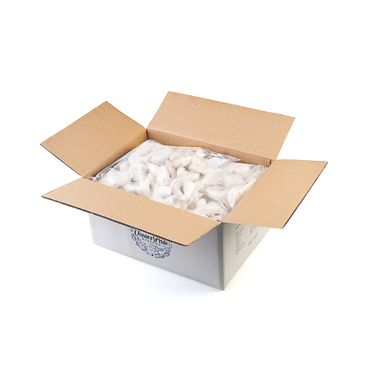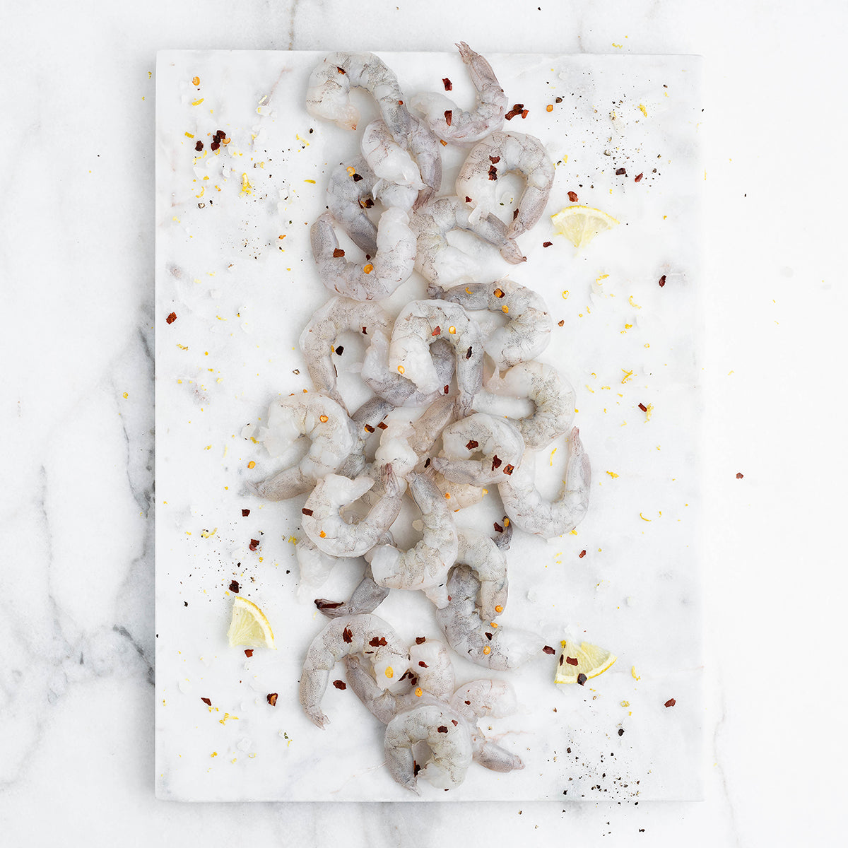 Frozen Peeled, Deveined, Tail-off Shrimps.