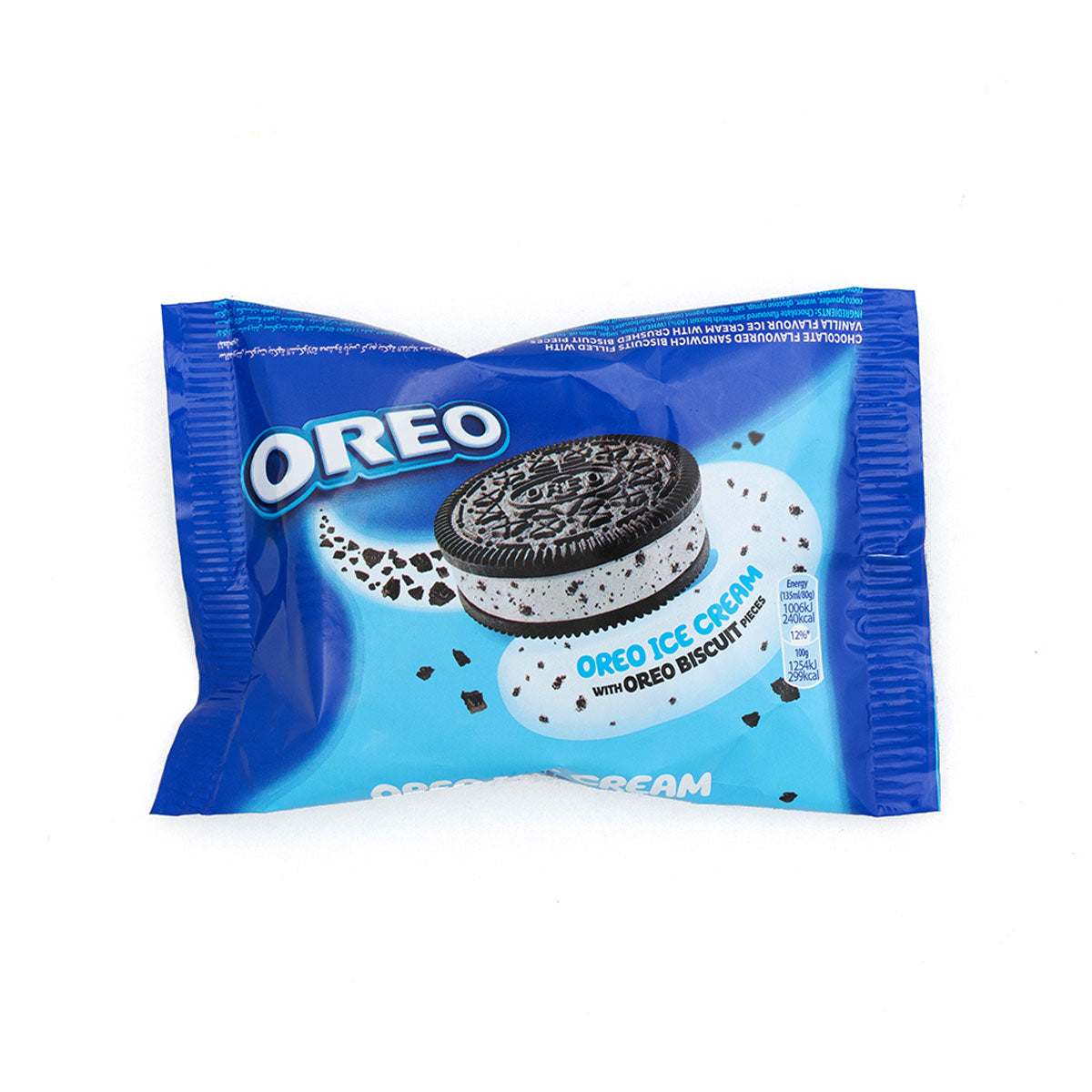 Get ready for an irresistible, hand-held frozen treat. The OREO Ice Cream Sandwich takes the iconic chocolate cookie and transforms it into a delightful frozen dessert perfect for any time your sweet tooth calls. The rich, creamy ice cream is speckled with crushed OREO biscuit pieces, ensuring you get that familiar cookies-and-cream flavor and crunch in every single bite. Sandwiched in the middle is a generous layer of vanilla-flavored ice cream, which melts in your mouth.
